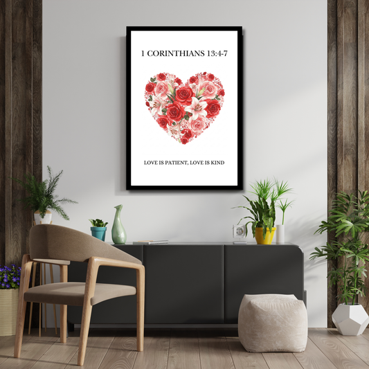 1 Corinthians 13:4–7 – Floral Heart Scripture Wall Art
